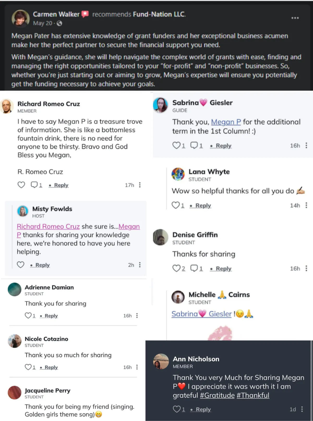 With Megan’s guidance, she will help navigate the complex world of grants with ease, finding and managing the right opportunities tailored to your ”for-profit” and ”non-profit” businesses. So, whether you’re just starting out or aiming to grow, Megan’s expertise will ensure you potentially get the funding necessary to achieve your goals.